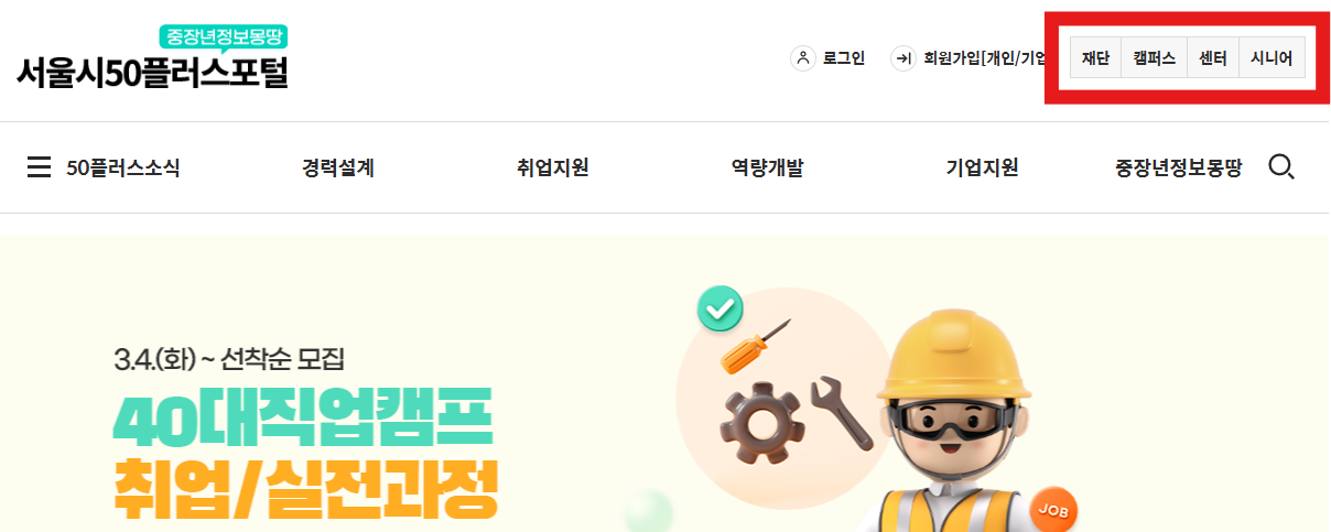 | 운영기관 | - 서울시 50플러스재단 - 권역별 운영: 서부, 중부, 남부, 북부, 동부권 및 성북.성동구 |